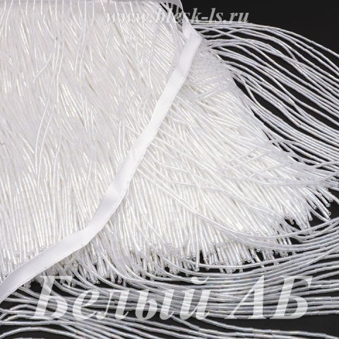 Бахрома из стекляруса 20 см, Белая АБ, опт от 5 м